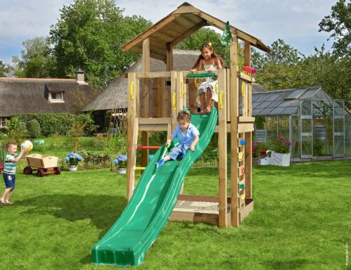 Buiten spelen stimuleert de fantasie, motoriek en sociale vaardigheden. Met een speeltoestel als de Jungle Chalet geef je kinderen een plek om te ontdekken, bewegen en samen te spelen – elke dag opnieuw!