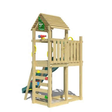 Bereid je voor op een magische reis met de Jungle Safari - een fantastisch houten speeltoestel dat je achtertuin verandert in de coolste speeltuin ooit. Vol met een glijbaan, klimladder, muur, zandbak en meer, het is een plek waar buitenpret nooit stopt.