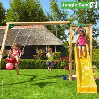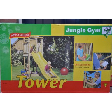 Jungle gym Tower inclusief op maat gezaagd houtpakket en glijbaan in kleur naar keuze.